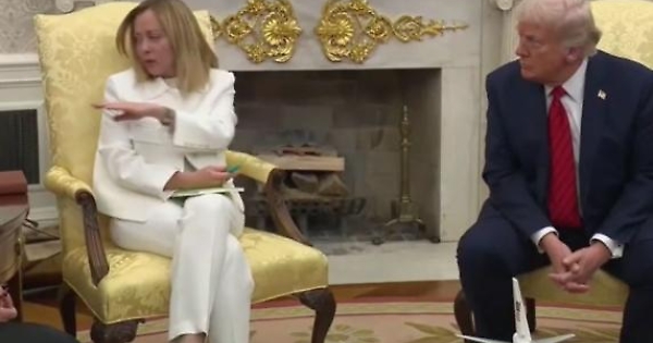 Fuoriprogramma durante l'incontro tra la presidente del Consiglio Giorgia Meloni e il presidente degli Stati Uniti, Donald Trump alla Casa Bianca.