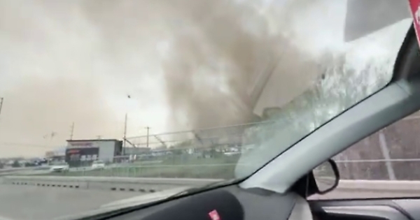Giovedì 17 aprile il maltempo e forti venti hanno sferzato York, nello stato americano del Nebraska, riducendo la visibilità e sollevando detriti che hanno coperto la città di una coltre di foschia marrone. Il video girato da Myles Nelson mostra una colonna di nubi a imbuto che si muove vorticosamente sopra gli edifici e si avvicina all'auto, gettando Nelson nello spavento. «All'improvviso la morte ha iniziato a turbinare proprio accanto a me e sono stato inghiottito dalla polvere e dai detriti», ha raccontato in seguito. (Storyful)