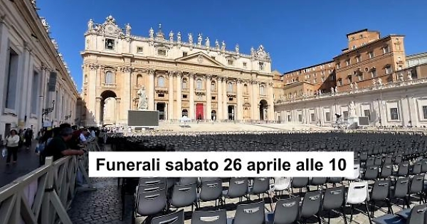 Quasi tutto pronto per i funerali di sabato alle 10 di Papa Francesco. A coordinare la sicurezza è stato nominato commissario straordinario, l'attuale capo della Protezione Civile, Fabio Ciciliano. Attese 300mila persone e 200 tra Capi di Stato e di Governo.