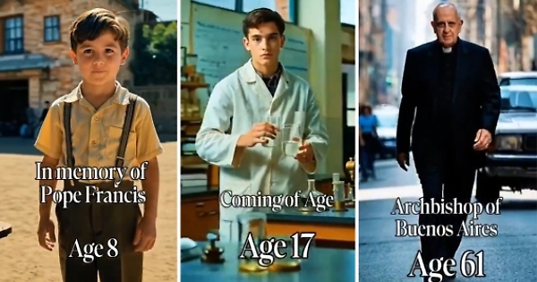 Un video realizzato dall'intelligenza artificiale ha provato a 'sintetizzare' in un minuto la vita di Papa Francesco, morto lunedì 21 aprile all'età di 88 anni. L'AI è partita dall'infanzia in Argentina, passando per la parentesi di lavoro come tecnico chimico fino alla vocazione al sacerdozio e al Papato.
