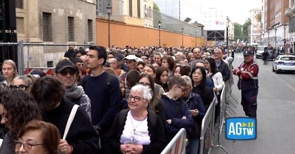 Sono migliaia i fedeli in fila per rendere omaggio a papa Francesco. Le code iniziano da Piazza Risorgimento.