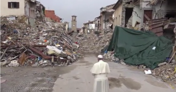 Il video dei Vigili del Fuoco di Roma che ricordano il Papa davanti alle macerie di Amatrice