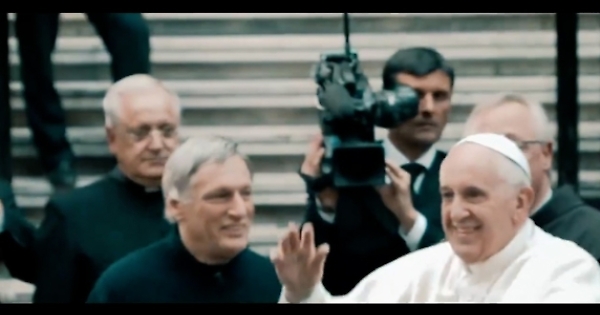 Il Santo Padre viene paragonato al capitano di una squadra di calcio: "Così ne trovi uno ogni molti anni, ma lui è stato diverso, perché entrò quando per la prima volta chiesero il cambio", racconta la voce narrante.