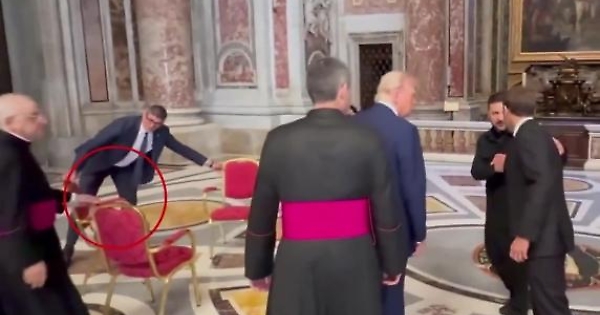 Per ora non è noto né per chi fossero pensate le tre sedie  inizialmente sulla scena (Trump, Zelensky e Macron? I primi due e un traduttore?); né perché - se l'ipotesi fosse quella di un incontro con più protagonisti - non ci fosse una eventuale quarta sedia per Starmer; né per​ché, alla fine, le sedie rimaste siano state due. Qualcuno ha detto al prelato che Trump e Zelensky non avrebbero avuto bisogno di un traduttore? Qualcuno ha detto a Macron che il «vertice» - durato poi 15 minuti circa - sarebbe stato soltanto a due, e non a tre? Oppure Macron si è allontanato intuendo che a parlarsi dovevano essere direttamente Trump e Zelensky, rendendo inutile la sedia che era stata predisposta in caso di «trilaterale»?