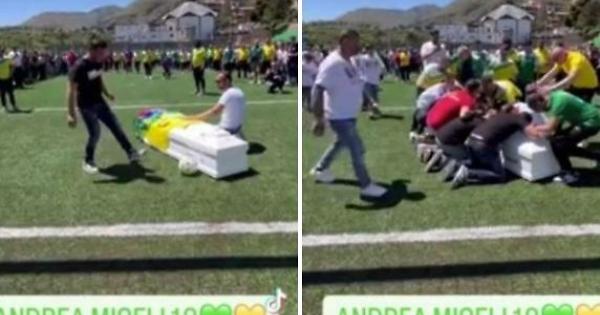 È stato salutato dai compagni proprio sul campo da gioco, con la bara bianca posizionata davanti alla porta