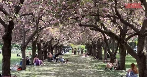 Gli abitanti di New York si sono ritrovati sotto i ciliegi in fiore al Brooklyn Botanic Garden. Le famiglie ne hanno approfittato per passeggiare lungo la Cherry Esplanade e la Cherry Walk, fermandosi per scattare foto ricordo. La primavera è arrivata nella 'Grande Mela' e gli alberi sono in piena fioritura.