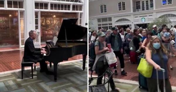 Come sul Titanic: il pianista continua a suonare mentre l'aeroporto viene evacuato per allarme bomba