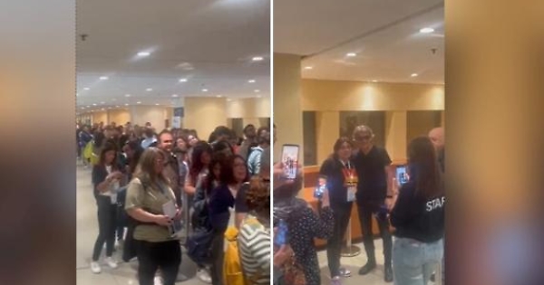 La chilometrica coda di fan in attesa di scattarsi un selfie con Ligabue. Il cantante era a Torino per partecipare a un incontro con il cardinale Matteo Zuppi.