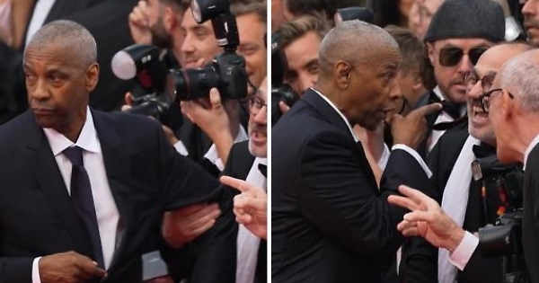 Denzel Washington contro un fotografo sul red carpet a Cannes, si divincola e punta il dito: «Smettila!»