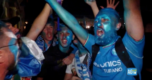 Il Napoli è campione d'Italia per la quarta volta nella storia. I tifosi azzurri in visibilio festeggiano in tutta Napoli, tra fumogeni e fuochi d'artificio.