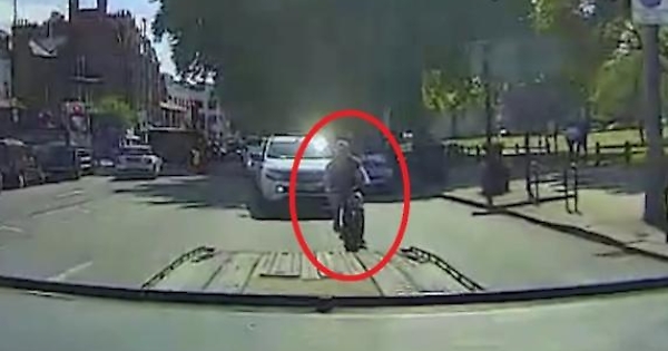 Il 16 maggio un ciclista è finito a faccia in giù contro la piattaforma di un camion in una strada di Londra. Il video è stato ripreso dalla telecamera di bordo del camion di Harrison Stuart, autista di una bisarca per il trasporto di automobili. Come si vede nel filmato, il ciclista in un momento di distrazione ha finito per tamponare il camion e per ribaltarsi proprio in mezzo al traffico. Per fortuna nessuno è rimasto ferito nell'episodio. (Caters News)