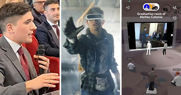 Anche a Catania, arriva la prima laurea nel “Metaverso”, la nuova dimensione virtuale in cui potrebbe essere possibile vivere in un futuro non troppo lontano. Il protagonista è il venticinquenne Matteo Catania, studente del dipartimento di Scienze politiche e sociali dell’Università di Catania, che si è laureato proprio questa mattina in Scienze dell’amministrazione e dell’organizzazione, sostenendo sia il tradizionale esame orale alla presenza della commissione nella splendida aula magna di Palazzo Pedagaggi e sia in un’aula virtuale, a forma di anfiteatro, appositamente allestita nel Metaverso della piattaforma Spatial.