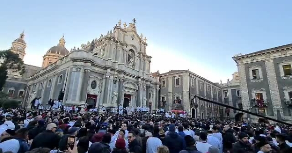 S. Agata, piazza Duomo gremita per l'arrivo della Patrona