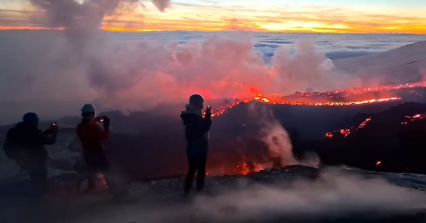 Etna, tramonto e lava sopra le nuvole e sotto il cratere: lo spettacolare video del vulcanologo