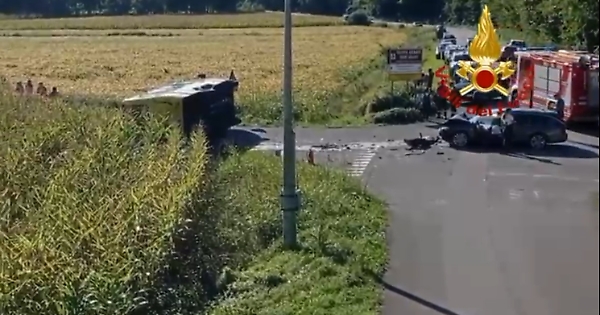 Scuolabus si ribalta dopo uno scontro con un'auto, cinque feriti (due sono bimbi) a Udine